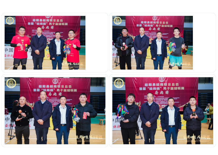 随着比赛的结束,桂阳县桂商联合总会首届“桂商杯”男子篮球联赛的闭幕式在县全民健身中心隆重举行。闭幕式上,县政协副主席、工商联主席杨涛为获奖队伍颁发了奖杯和荣誉证书。冠军东莞队、亚军珠海队、季军广州队、殿军青创协会代表队分别登上了领奖台,享受着胜利的荣耀与观众的欢呼。