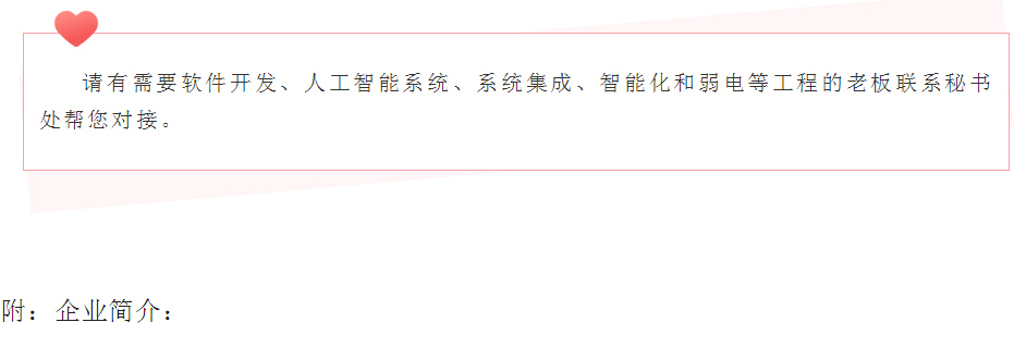 期望合作:软件开发、人工智能系统、系统集成、智能化和弱电等工程