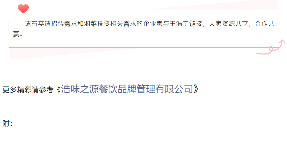期望合作:商务宴请、招待需求和湘菜投资相关业务