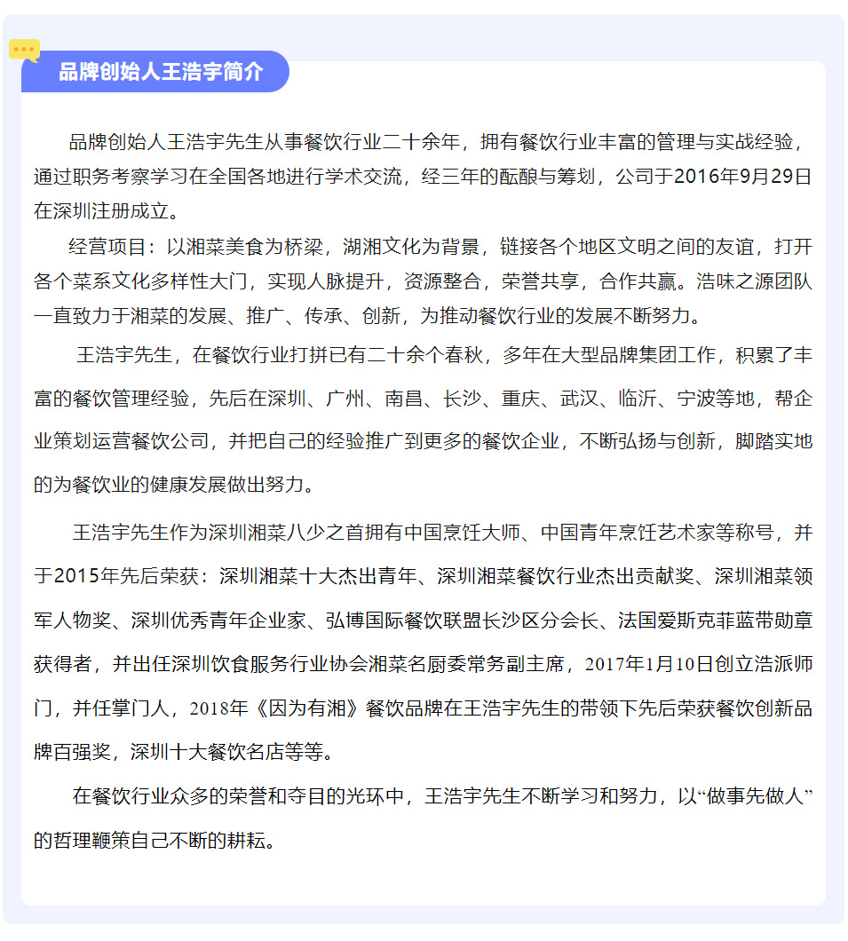 从深圳湘菜八少之首到餐饮连锁品牌引领者王浩宇(深耕餐饮行业20余载)