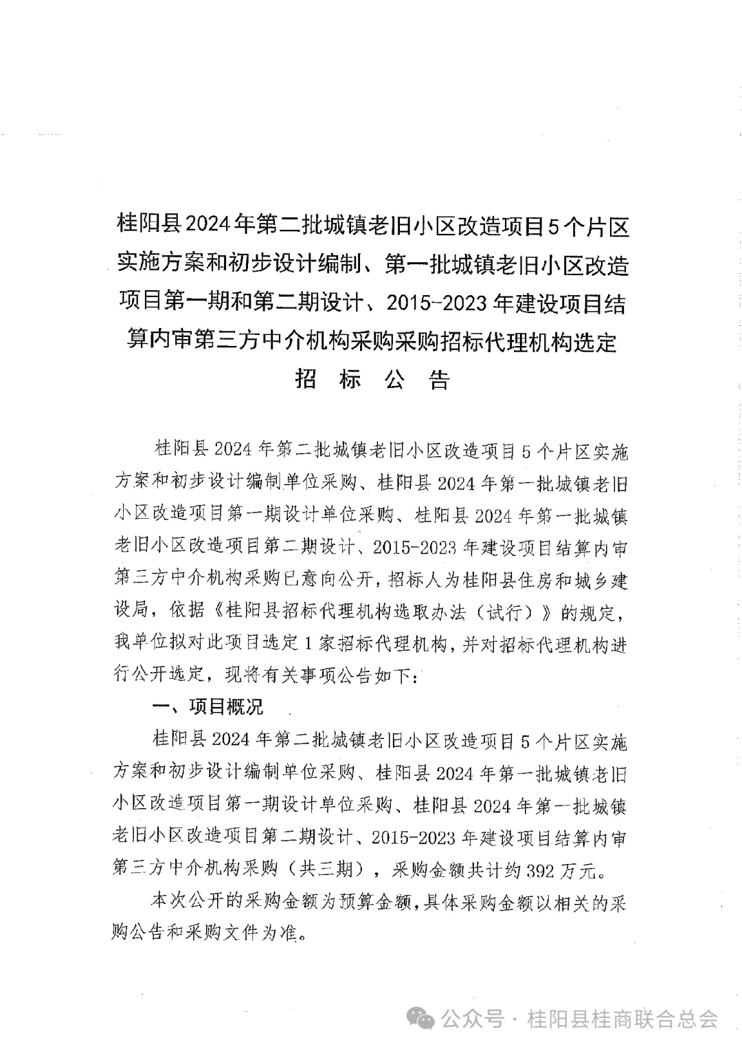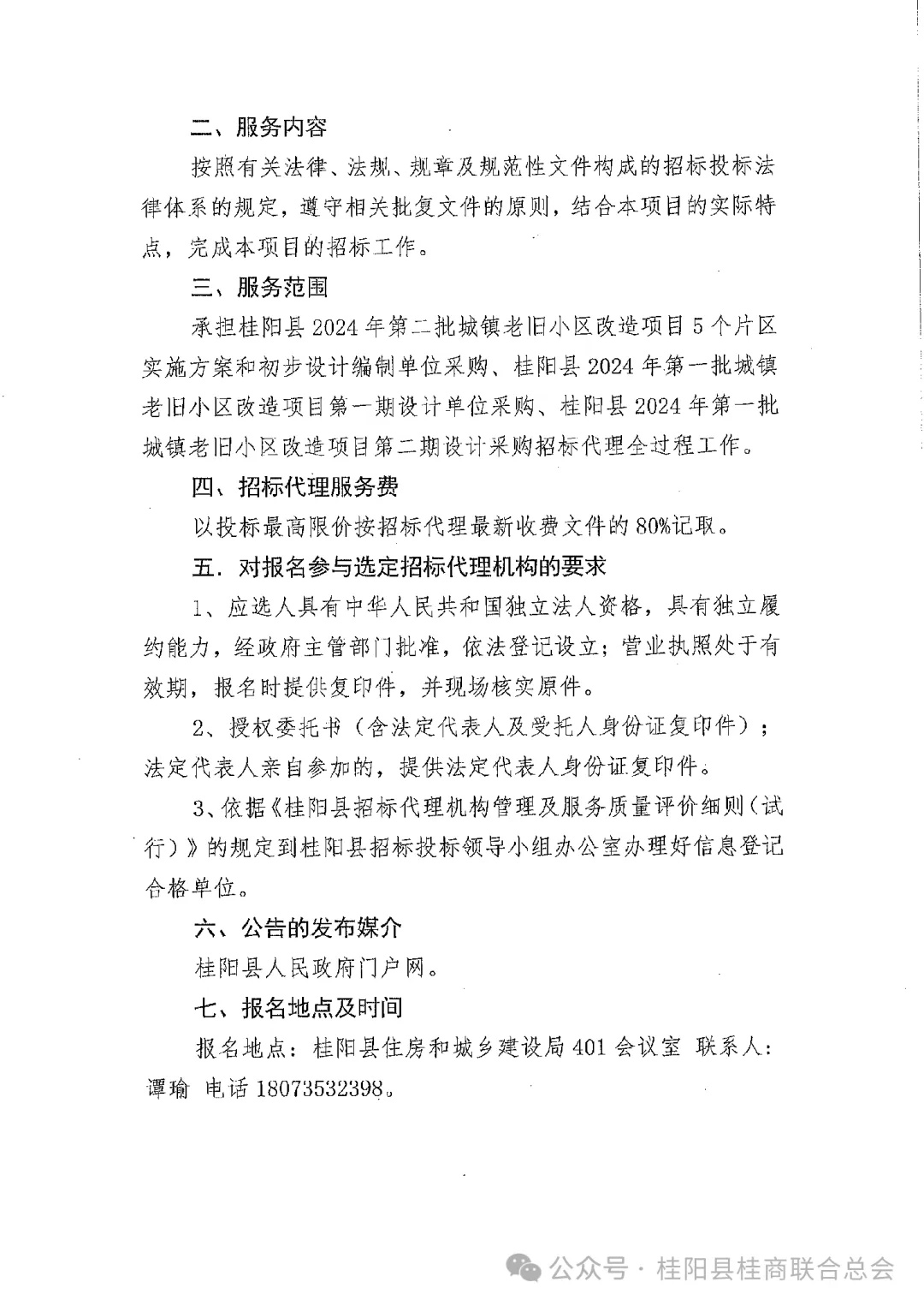 原标题:《桂阳县2024年第二批城镇老旧小区改造项目5个片区实施方案和初步设计编制、第一批城镇老旧小区改造项目第一期和第二期设计、2015-2023年建设项目结算内审第三方中介机构采购采购招标代理机构选定招标公告